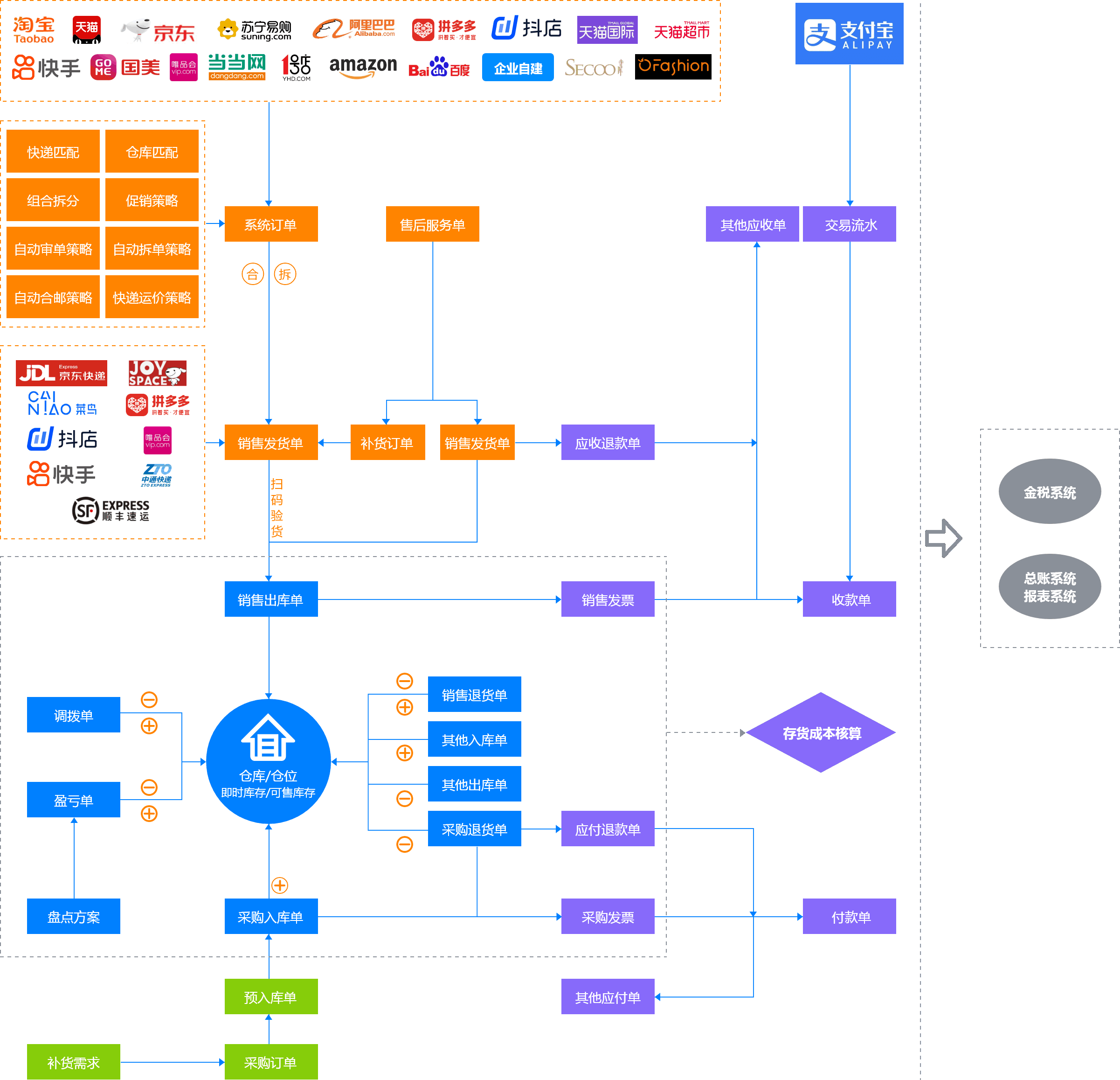 多平台、多店铺、多仓库、多快递统一管理